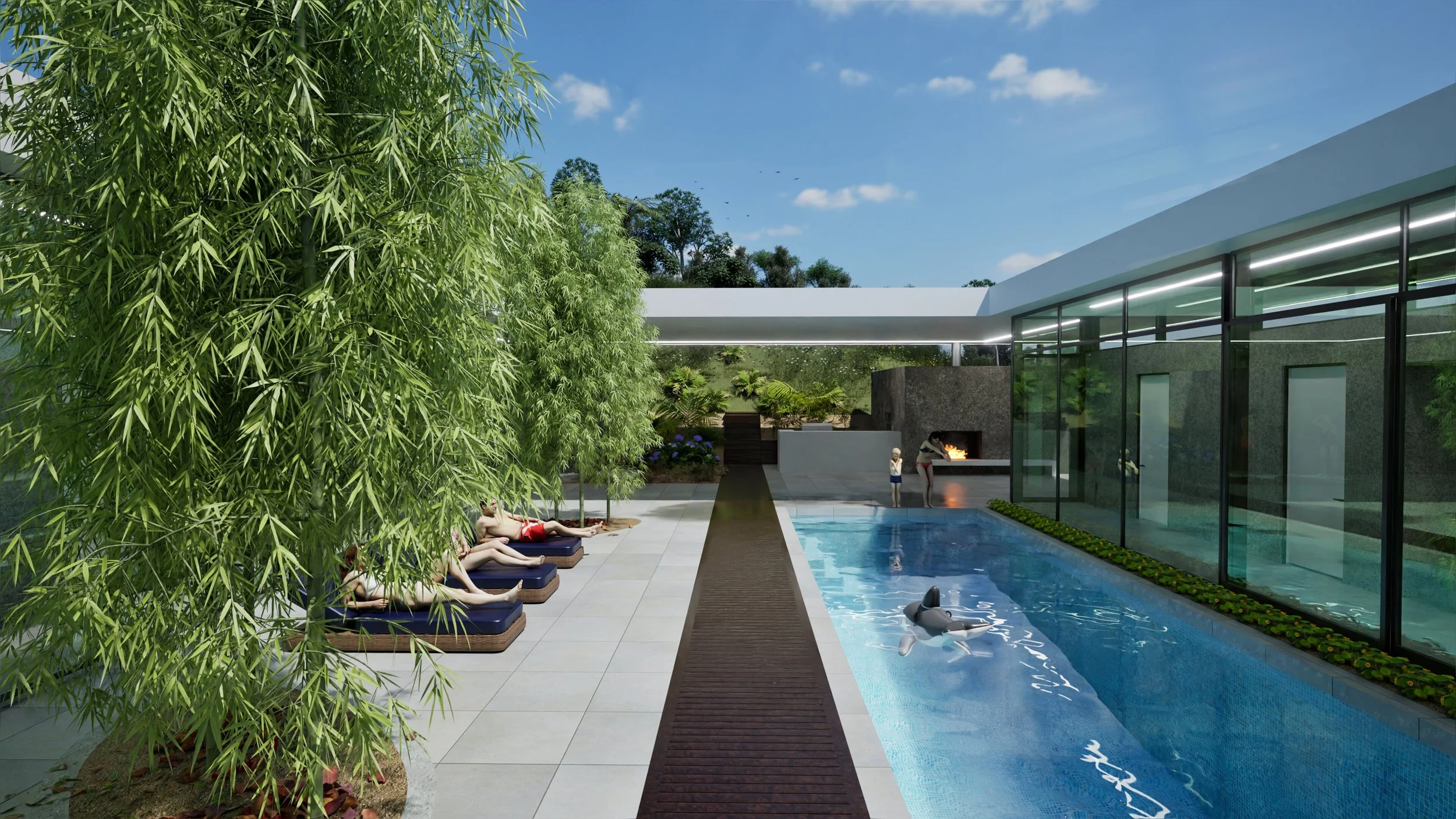 This dwelling has something for everyone, a pool, a gym, a theatre, an office, a BBQ and pizza area with private lounges and open ones.